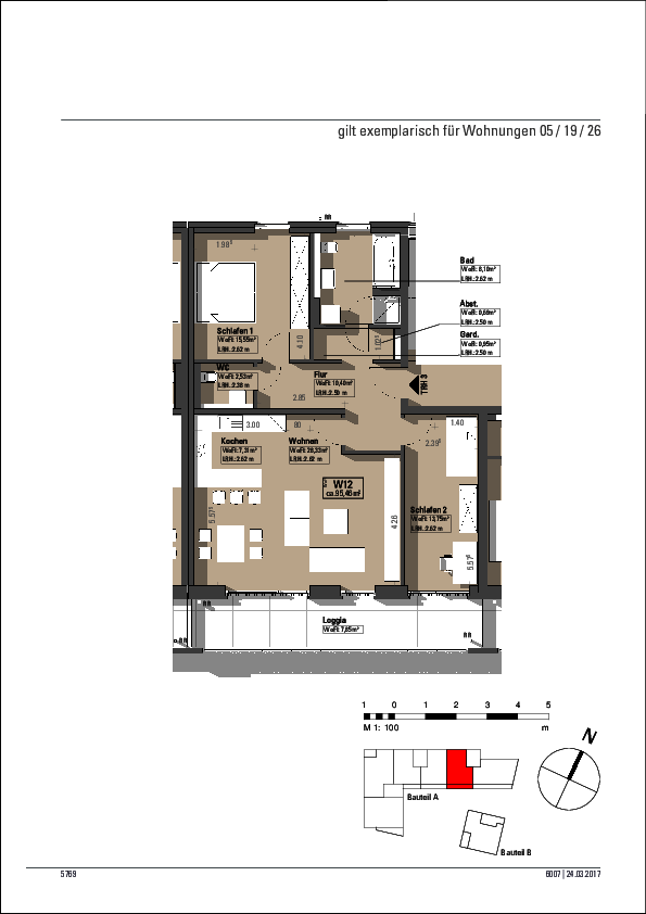 Neben den drei hellen und großzügig geschnittenen Zimmern verfügt die Wohnung über ein modernes Badezimmer mit Badewanne und Dusche sowie ein separates Gäste-WC. Ein praktischer Abstellraum innerhalb der Wohnung bietet zusätzlichen Stauraum und erhöht den Wohnkomfort.