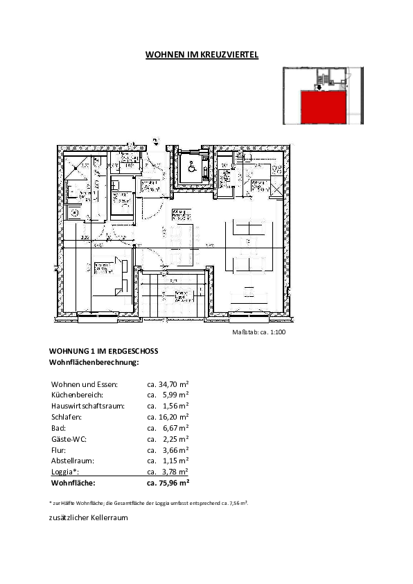 Die moderne Wohnung befindet sich im Erdgeschoss des im Jahr 2017 erstellten Gebäudes. Die Stübbenstraße liegt ruhig, aber in zentraler Lage, im beliebten und urbanen Kreuzviertel. Das Trendviertel ist im Stadtbezirk Innenstadt-West angesiedelt und somit unweit von der Innenstadt entfernt. Zahlreiche Einkaufsmöglichkeiten, Lokale und öffentliche Einrichtungen sind nahe gelegen.